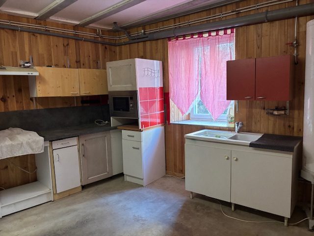 Maison de village avec jardin. RDC entrée, cuisine d'été, WC, grand atelier (53m²), garage (34m²). Accès sur le jardin de 300m²; 1er, séjour/cuisine (45m²), salle de douche, WC, une chambre. 2eme une chambre Travaux importants réalisés en 2016 après un incendie